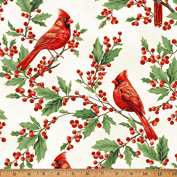 100% cotton screenprint with metallic accent. Approx. 44” wide. Avg. bolt 15 yards.