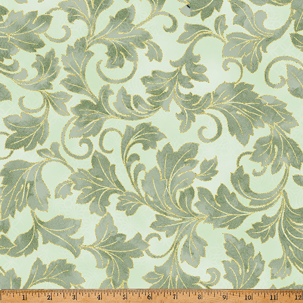 100% cotton screenprint with metallic accent. Approx. 44” wide. Avg. bolt 15 yards.