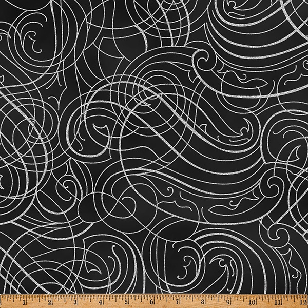 100% cotton screenprint with metallic accent. Approx. 44” wide. Avg. bolt 15 yards.