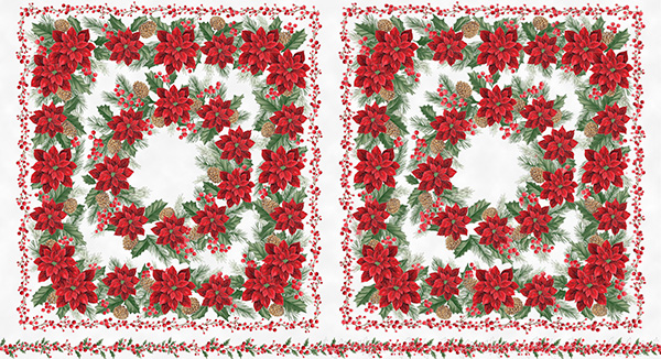 100% cotton screenprint with metallic accent. A double panel with each panel measuring approximately 21”. Avg. bolt 15 yards.