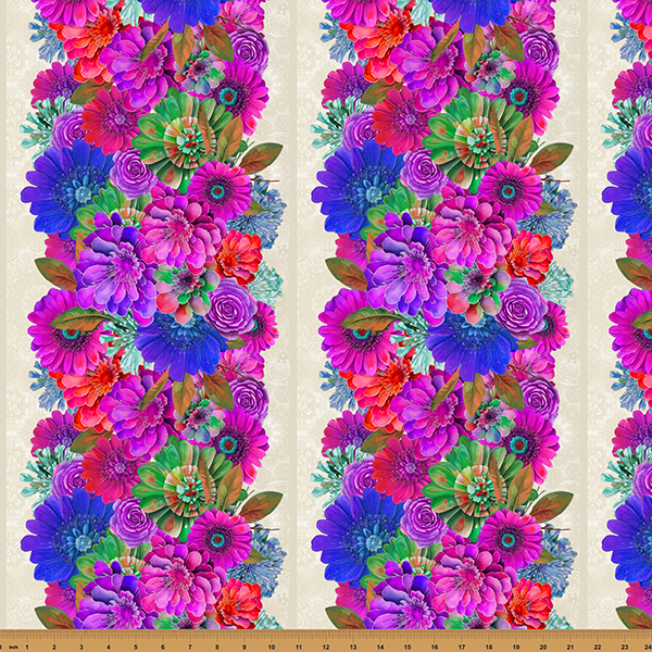 100% cotton. A Hoffman Spectrum Digital print. 43/44” wide. Bloom! begins shipping in April 2026.