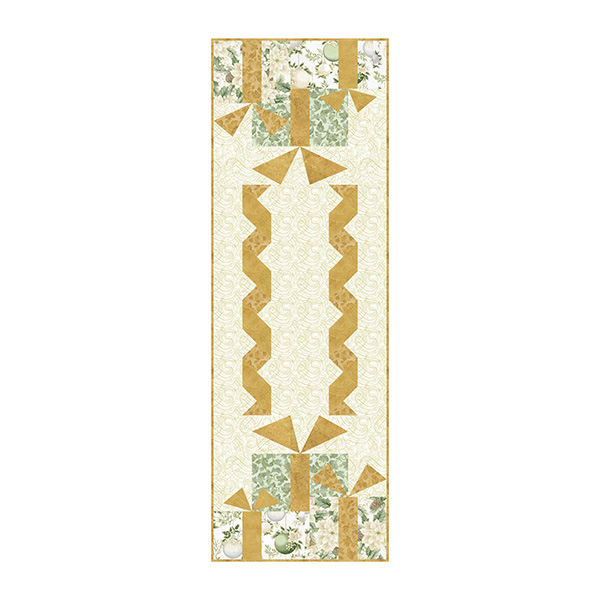 Deck the halls with presents and ribbon with this sweet table runner kit designed by Bear Hug Quiltworks. This table runner kit is offered in three different colorations: gold, silver and parchment! Each kit includes everything needed for one runner quilt top and the pattern is included.