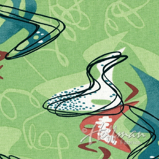 100% cotton screenprint on barkcloth. Approx. 44" wide. Avg. bolt 15 yards.