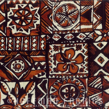 "Hawaiian Tapa." 100% cotton screenprint. Approx. 44" wide. Avg. bolt 15 yards.